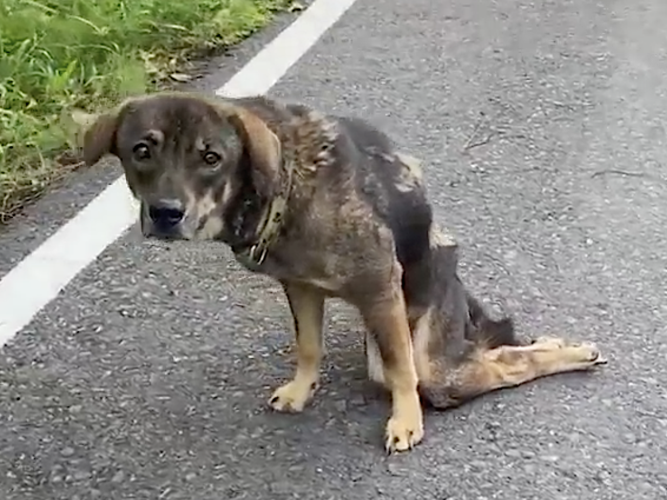 Caffe couldn’t stand up. She could only drag her back legs behind her. And she was utterly alone.